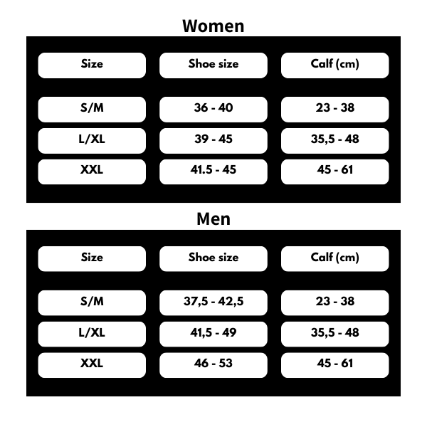 Gebruik de maattabel op onze productpagina en meet de omtrek van uw kuit in combinatie met uw schoenmaat. Twijfelt u tussen twee maten? Kies dan de kleinere voor voldoende compressie of juist de grotere voor comfort.